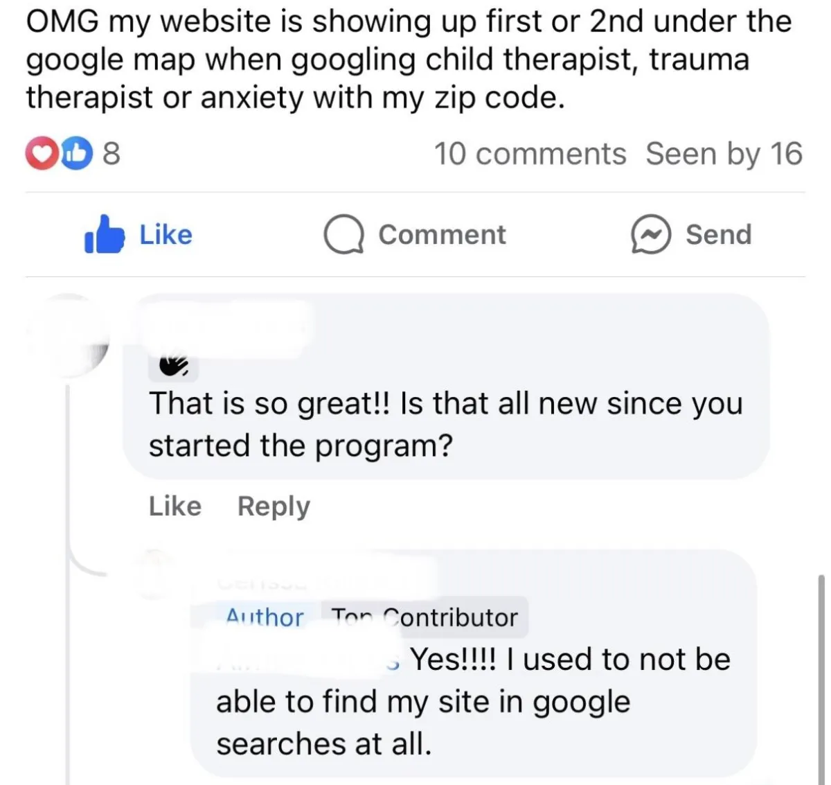 Absolutely! One of the main places clients go to find therapists is on Google, so if I can help you get to the top of Google more clients will reach out to you. And if I can help you get at least one new client at $150 and they meet with you at least once, you have made 15x the money back!